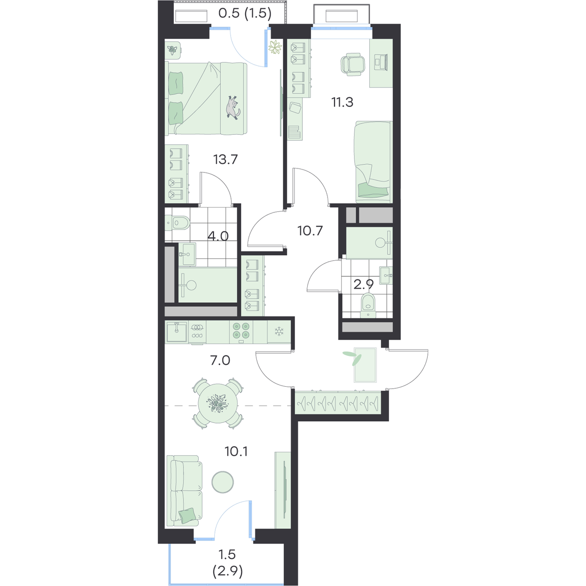 61.7 м2