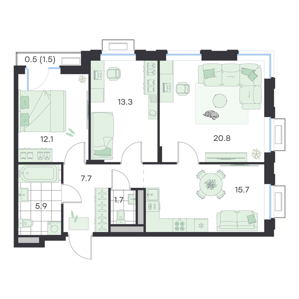 3-комнатная
