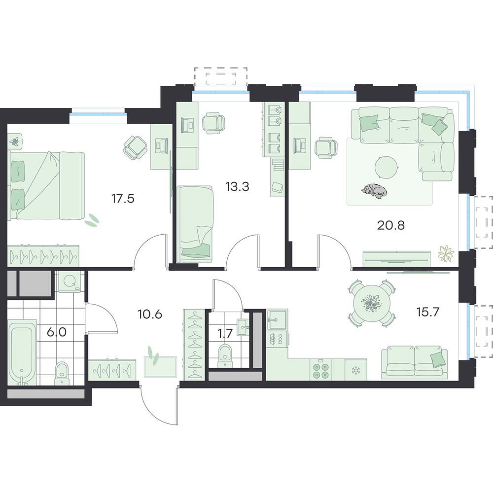 3-комнатная 77.7 м