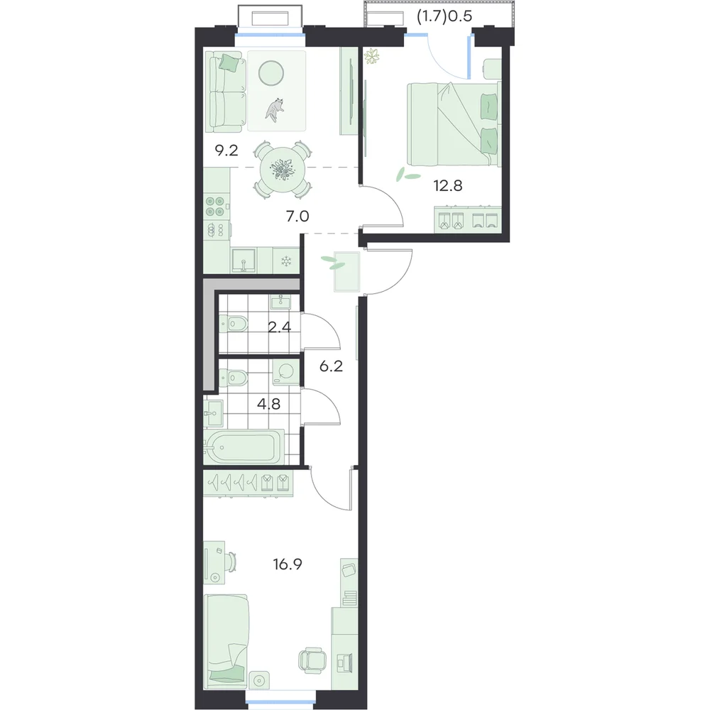 61.2 м2