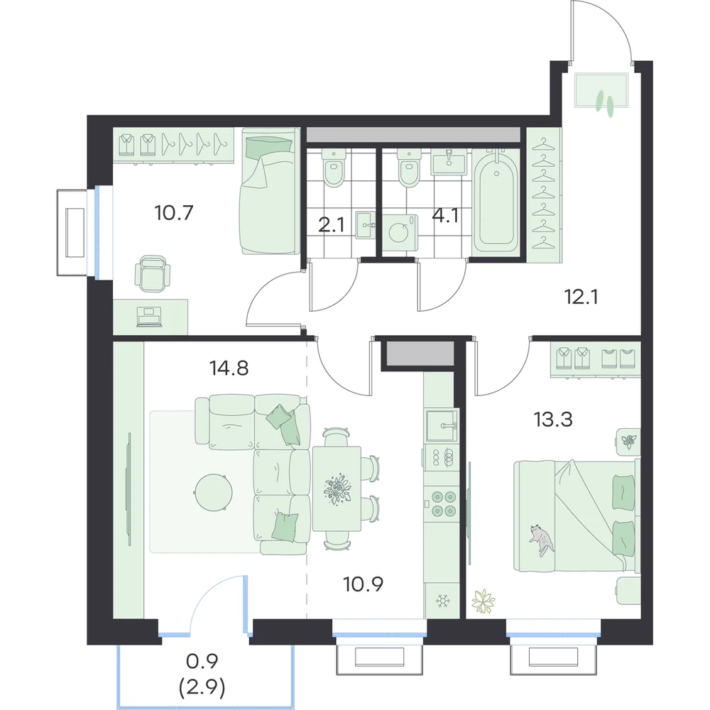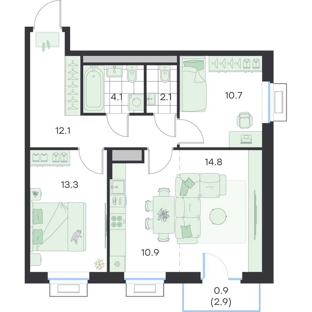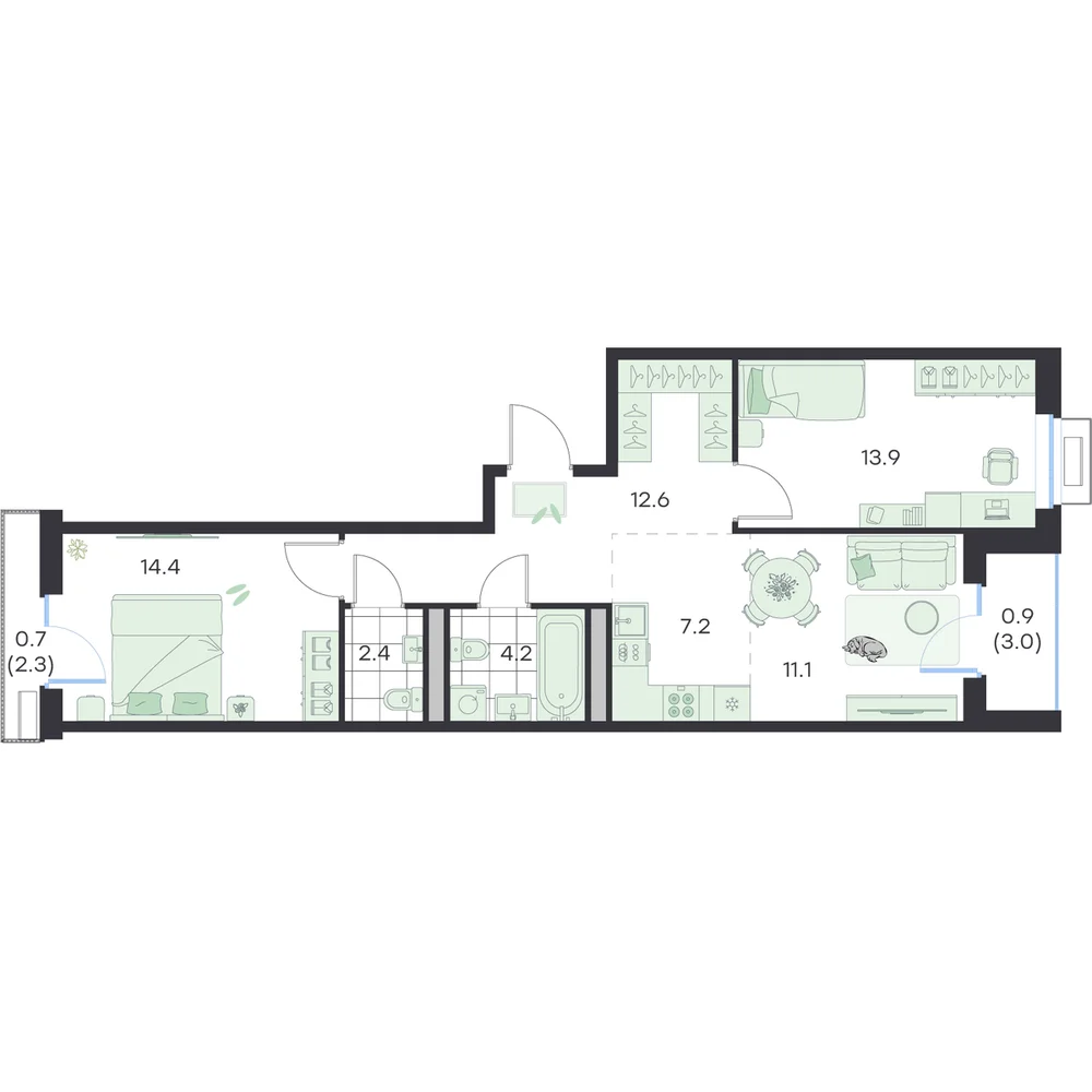 3-комнатная 66.9 м