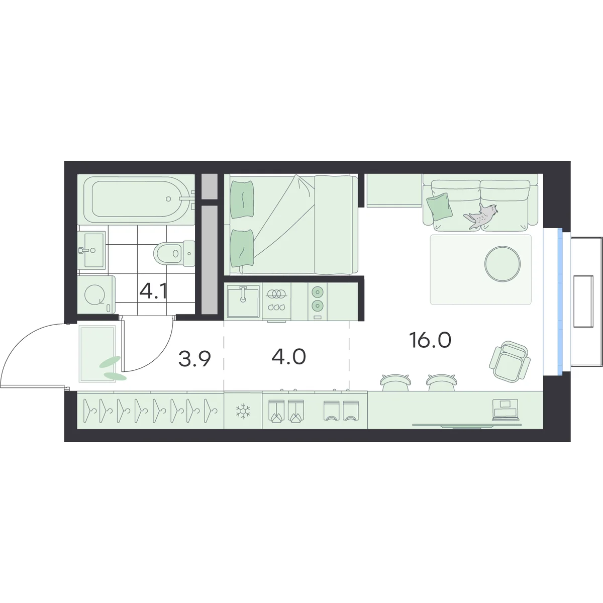 Студия 28 м2