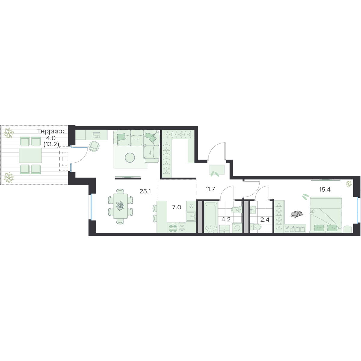 3-комнатная  69.8 м2