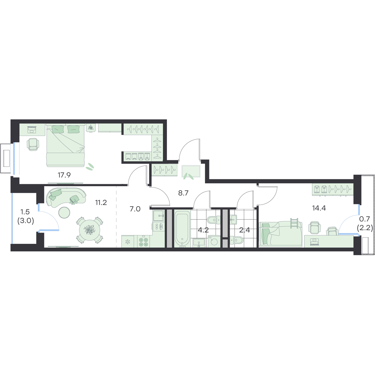 3-комнатная
