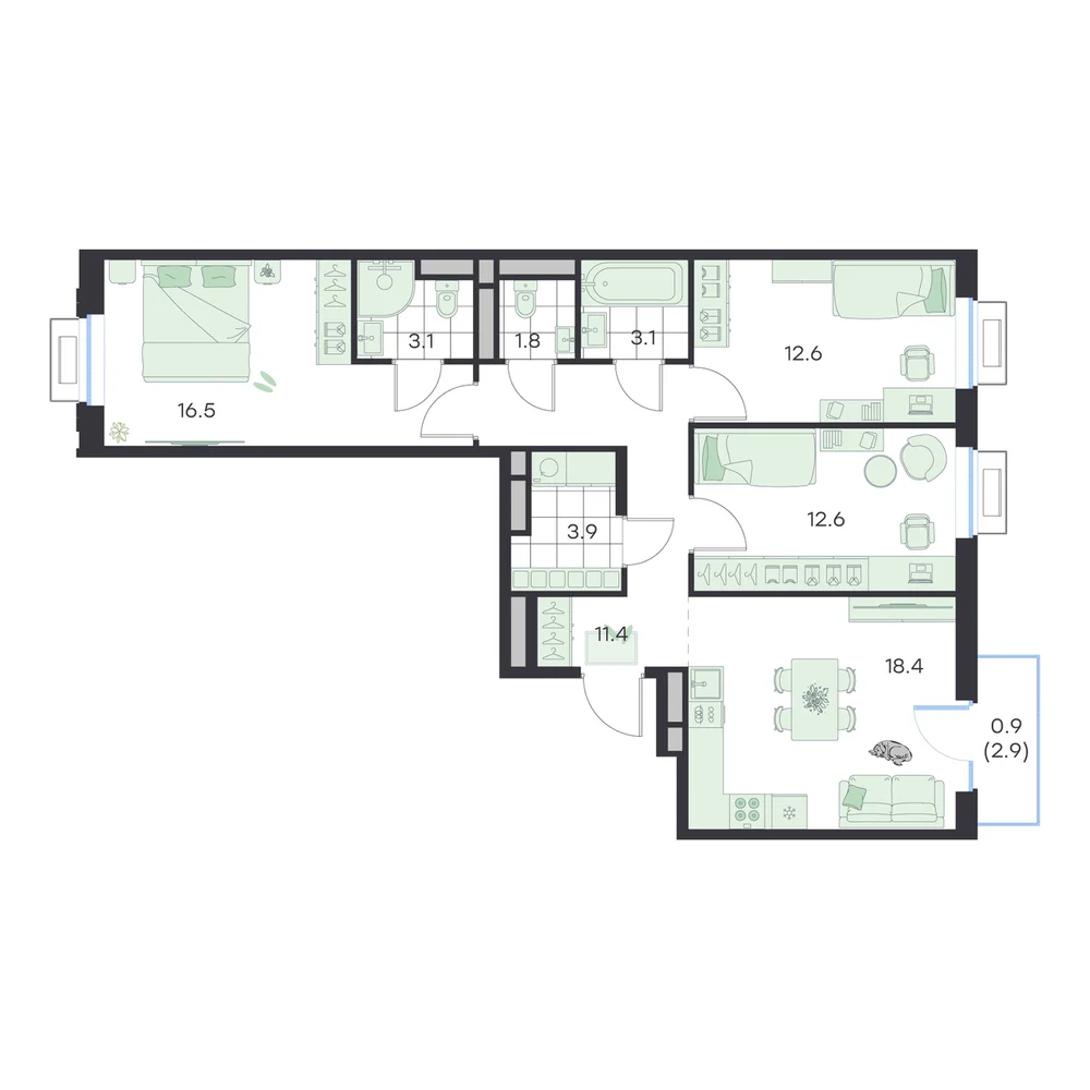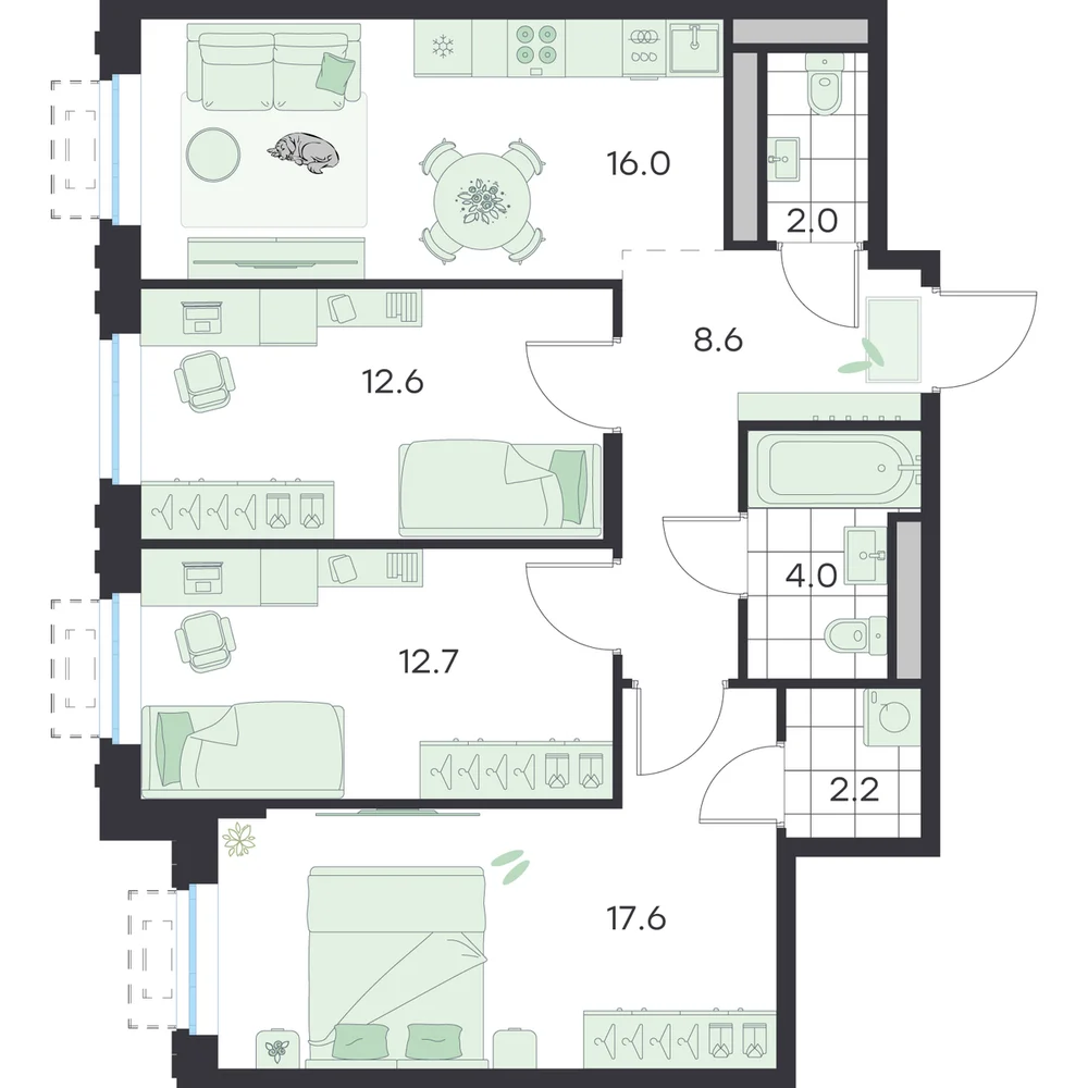3-комнатная