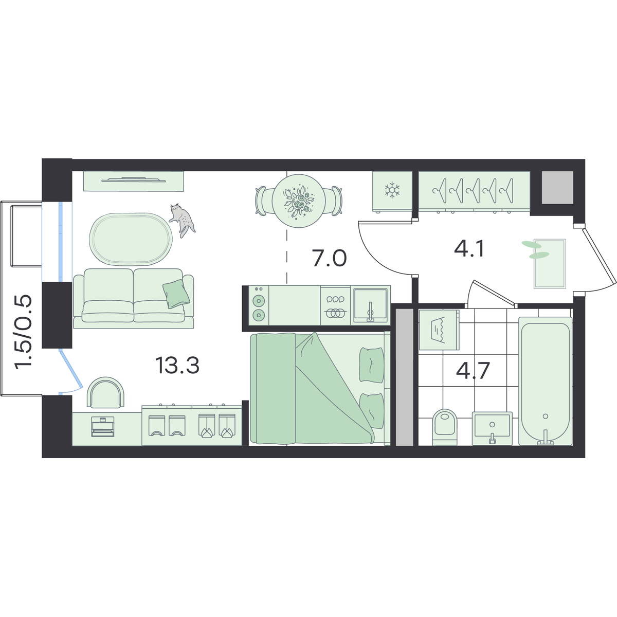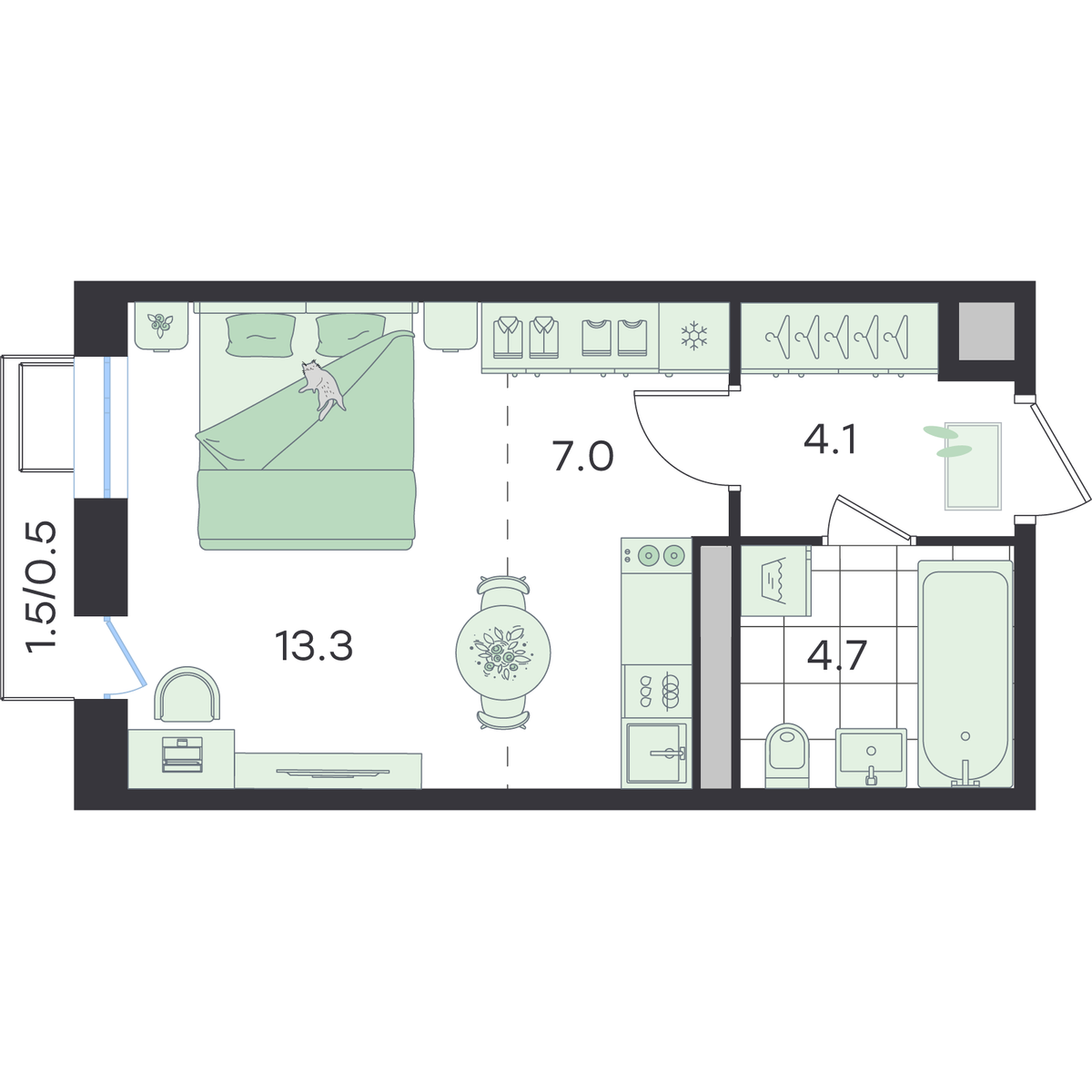 Студия 29.6 м2