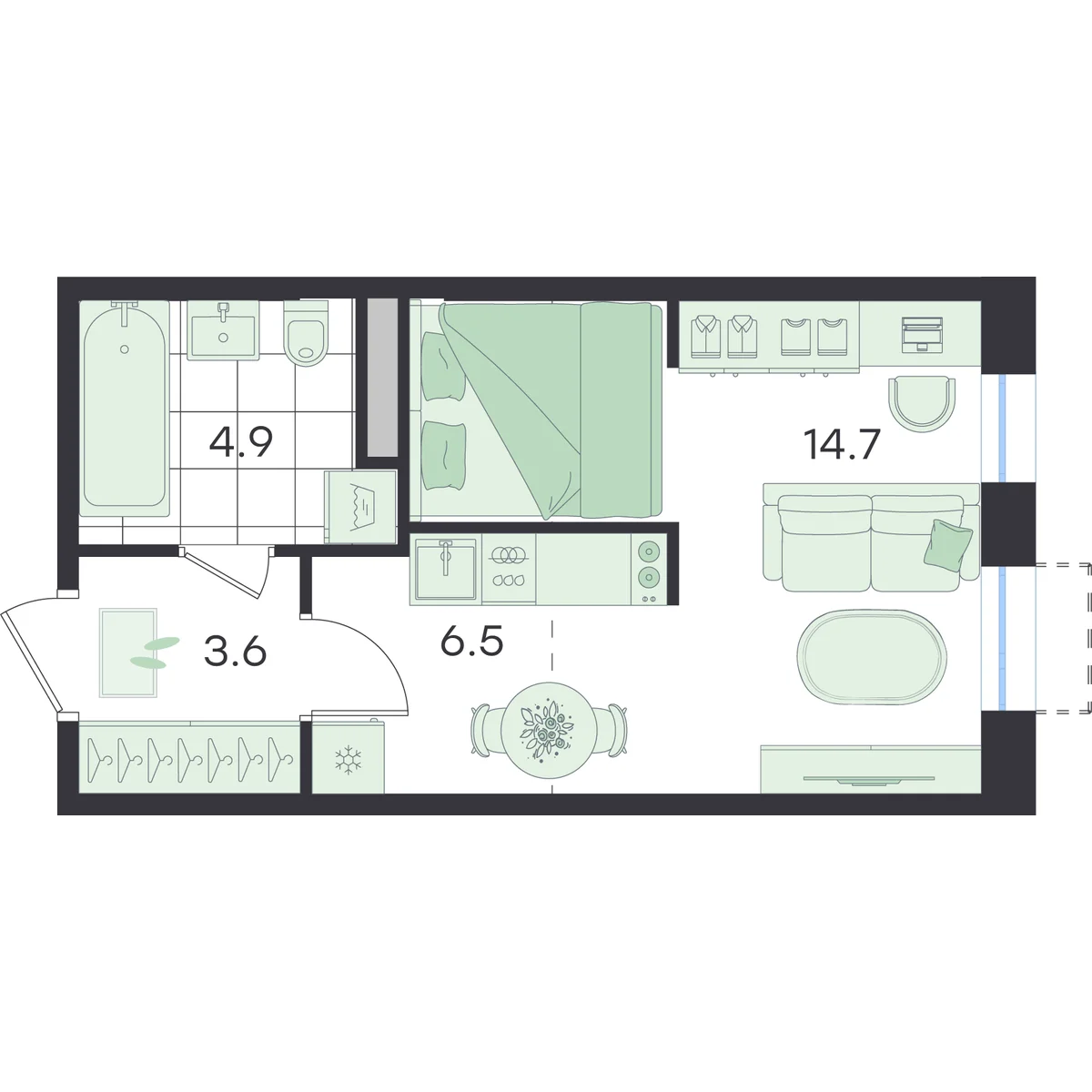 Студия 29.7 м2