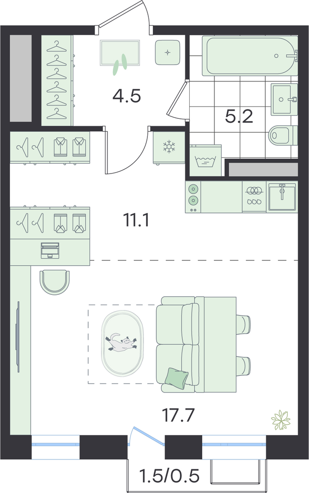 Варианты планировки студии 29,5 м²