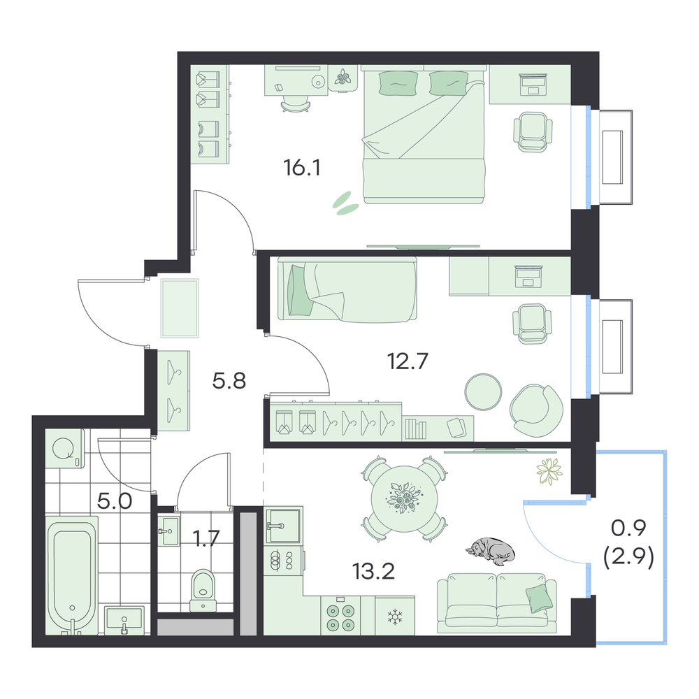 2-комнатная 51.3 м
