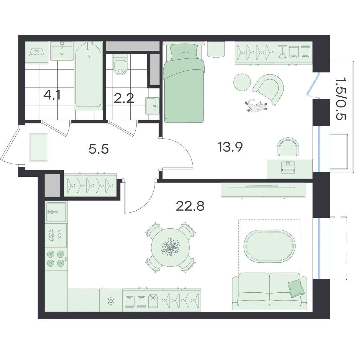 2-комнатная  48.9 м2
