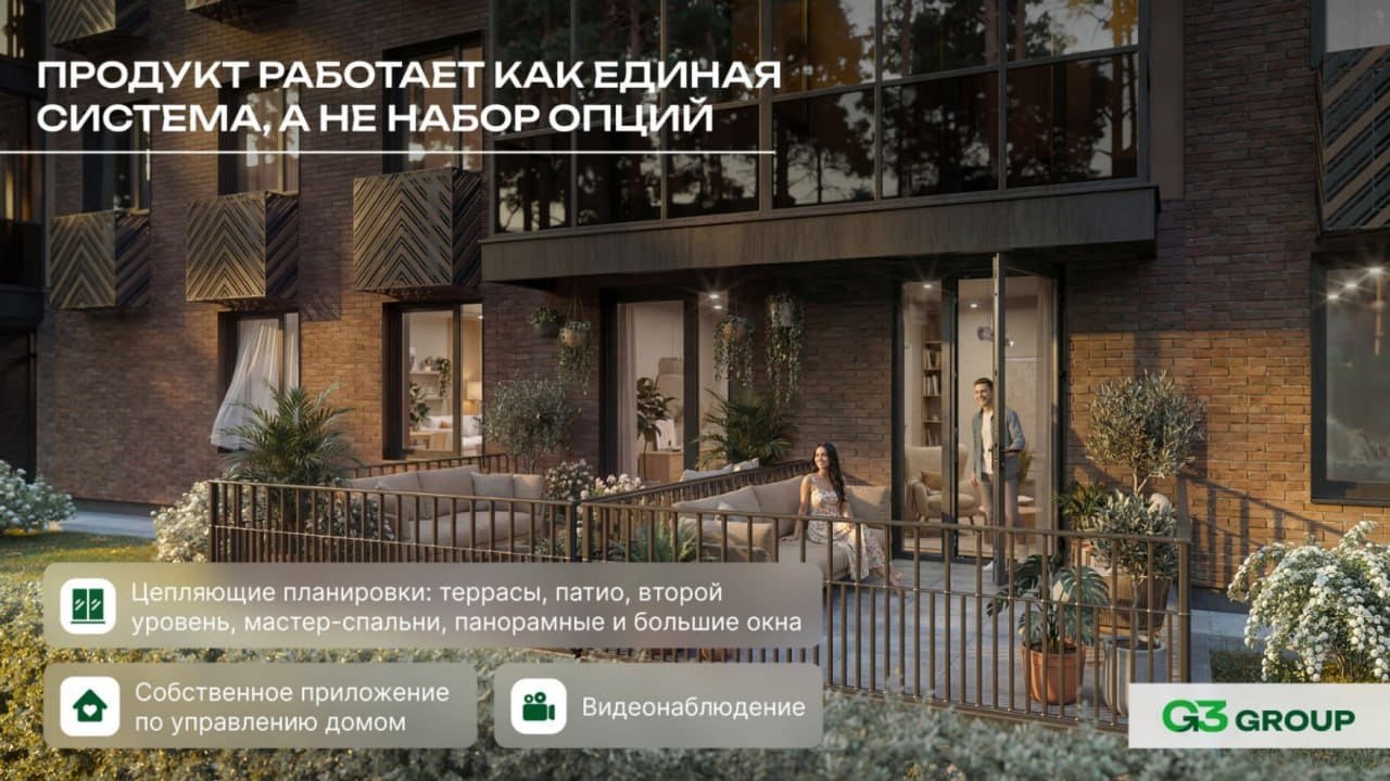 Планировочные решения ориентированы на реальные потребности и запросы будущих жителей: квартиры с террасами и патио, двухуровневые форматы, мастер-спальни, панорамные окна. Такой подход позволяет покупателям выбрать не просто площадь, а формат жизни, который им подходит.