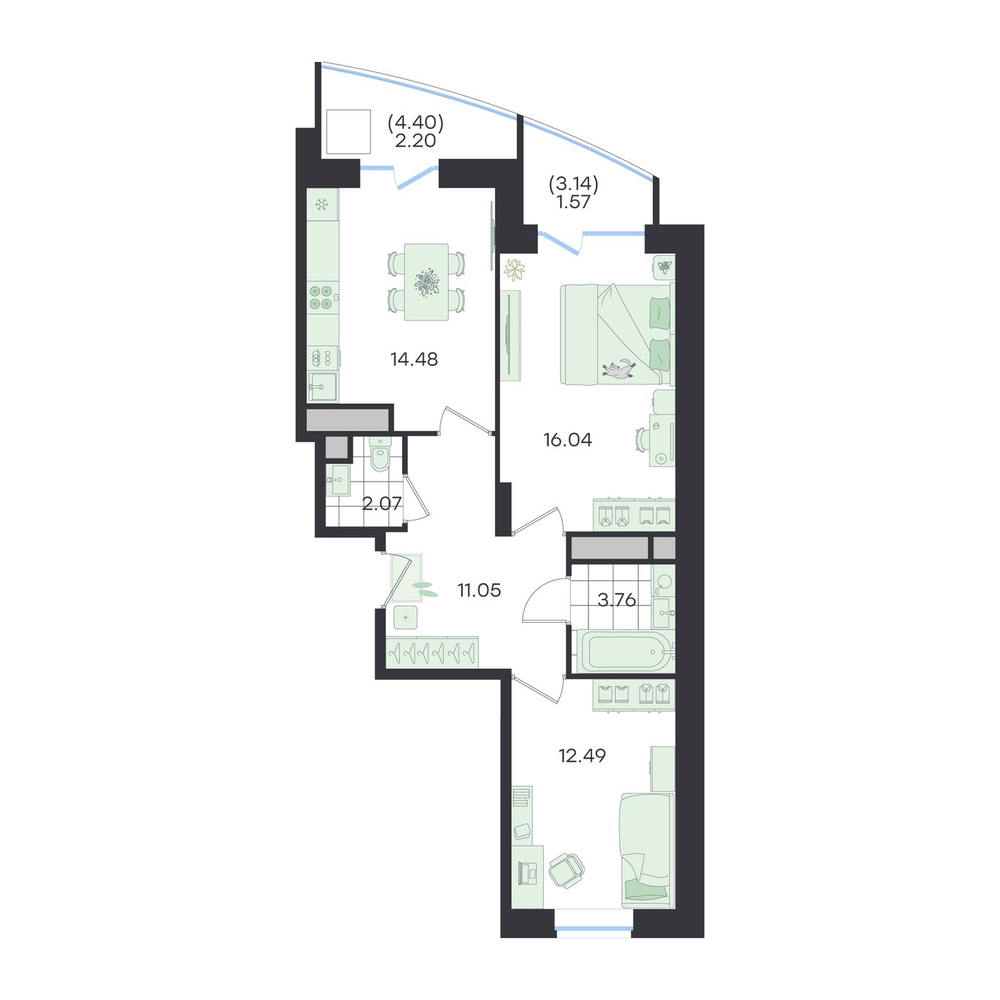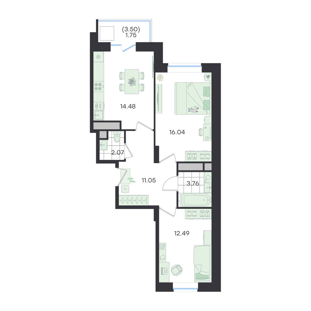 - +2 акции№ 108G3 Новый ВесеннийДом, Секция 1, Этаж 12