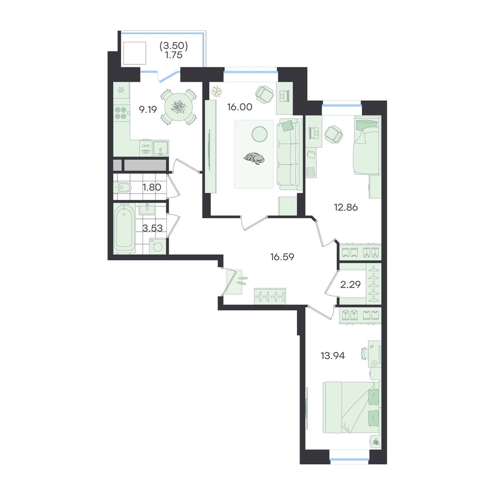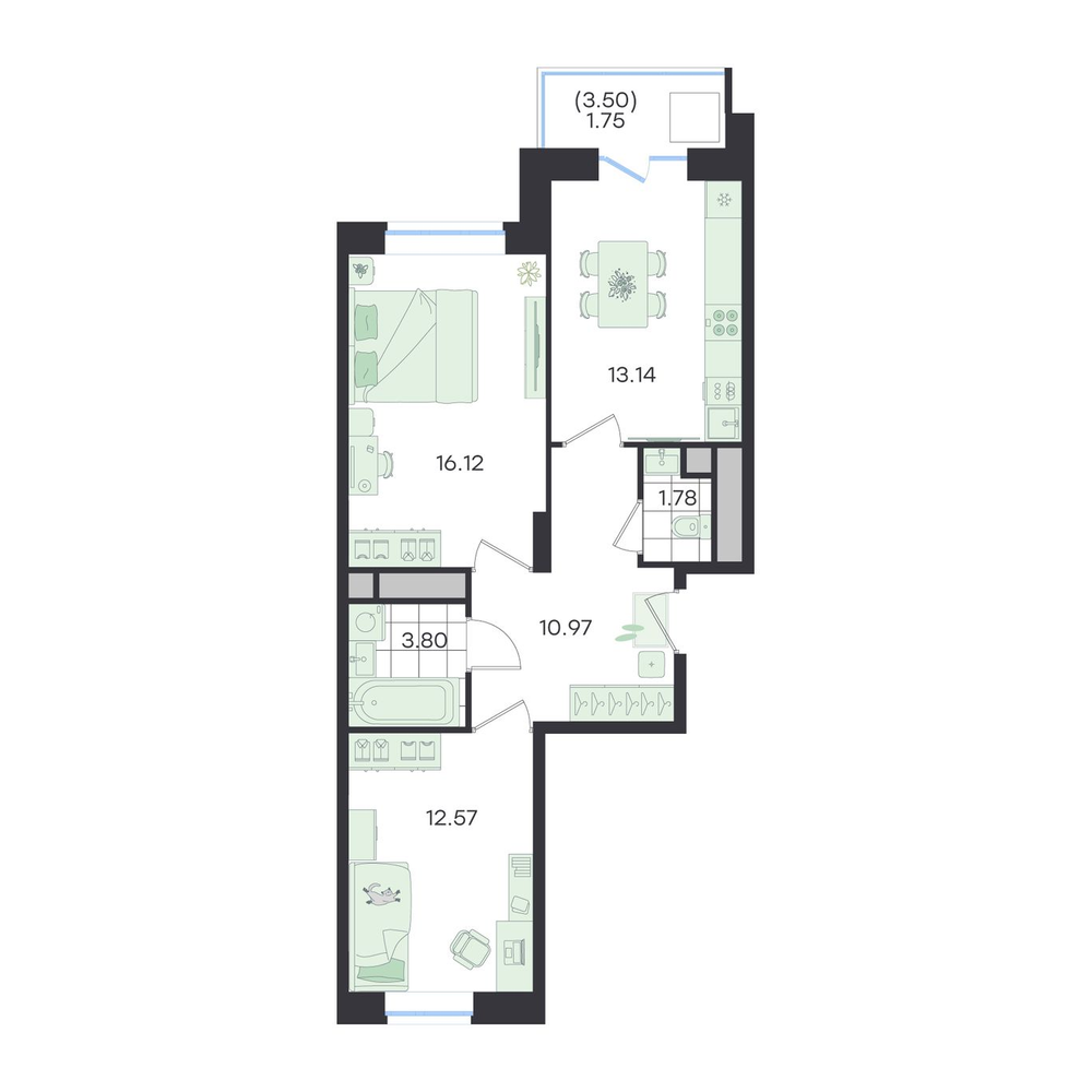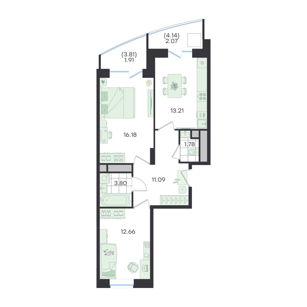 - +2 акции№ 302G3 Новый ВесеннийДом, Секция 3, Этаж 7