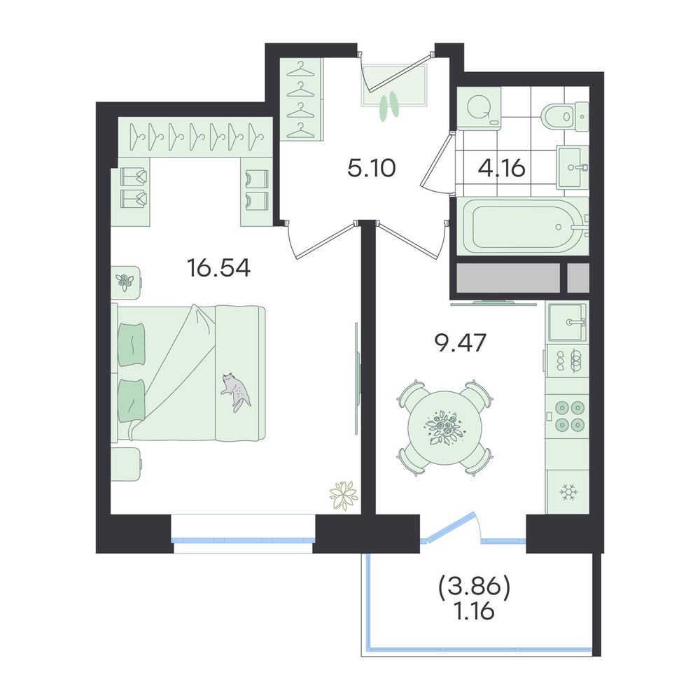 - +2 акции№ 338G3 Новый ВесеннийДом, Секция 3, Этаж 16